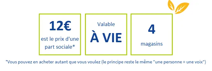 Notre coopérative s'inscrit dans les principes de l'économie sociale et solidaire (ESS). Chaque client.e peut choisir d'y adhérer en achetant une (ou plusieurs) part sociale de 12€.